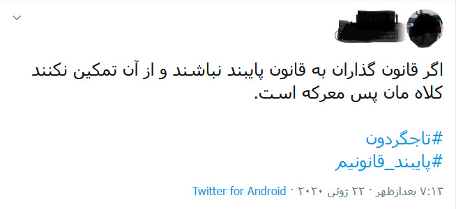 واکنش طرفداران تاجگردون در فضای مجازی به نتیجه بررسی کمیسیون تحقیق:اعلام پایبندی طرفداران تاجگردون نسبت به تایید نشدن اعتبارنامه از سوی کمیسیون تحقیق/هشتگ های #تاجگردون و #پایبند_قانونیم جز داغ ترین های توئیتر فارسی شد